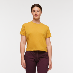 A super soft. odor-resistant t-shirt that’s the perfect base for mix-and-match outfits on the road. The Paseo Travel Crop features a classic crew neck. a cropped waist. and a resilient. quick-drying fabric blend.