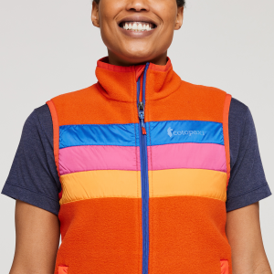 Limited-edition. made with recycled/repurposed materials. and bright as can be. the Teca Fleece Vest is perfect for early spring or late fall days when a puffer is overkill. or as a layer under a jacket come winter.