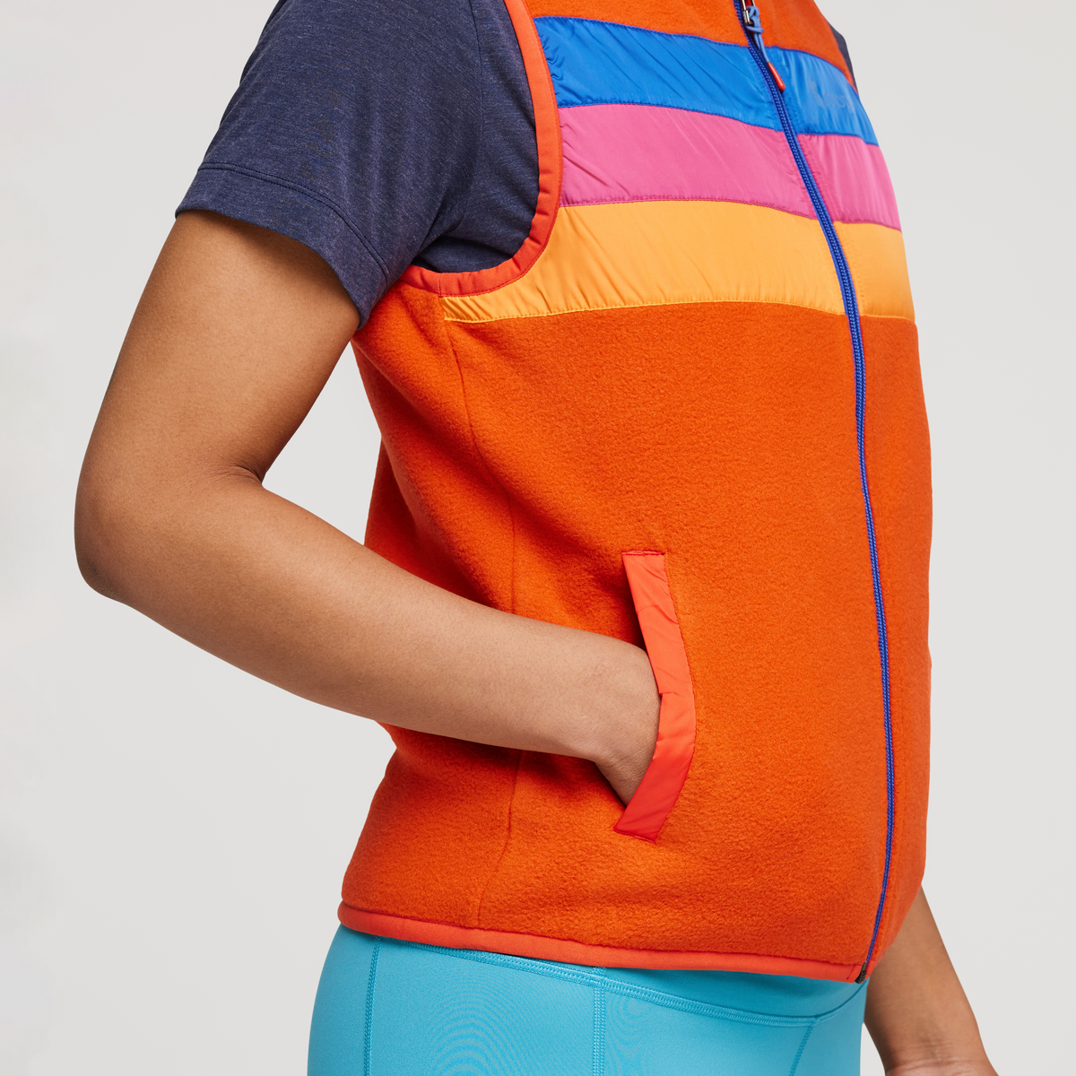 Limited-edition. made with recycled/repurposed materials. and bright as can be. the Teca Fleece Vest is perfect for early spring or late fall days when a puffer is overkill. or as a layer under a jacket come winter.